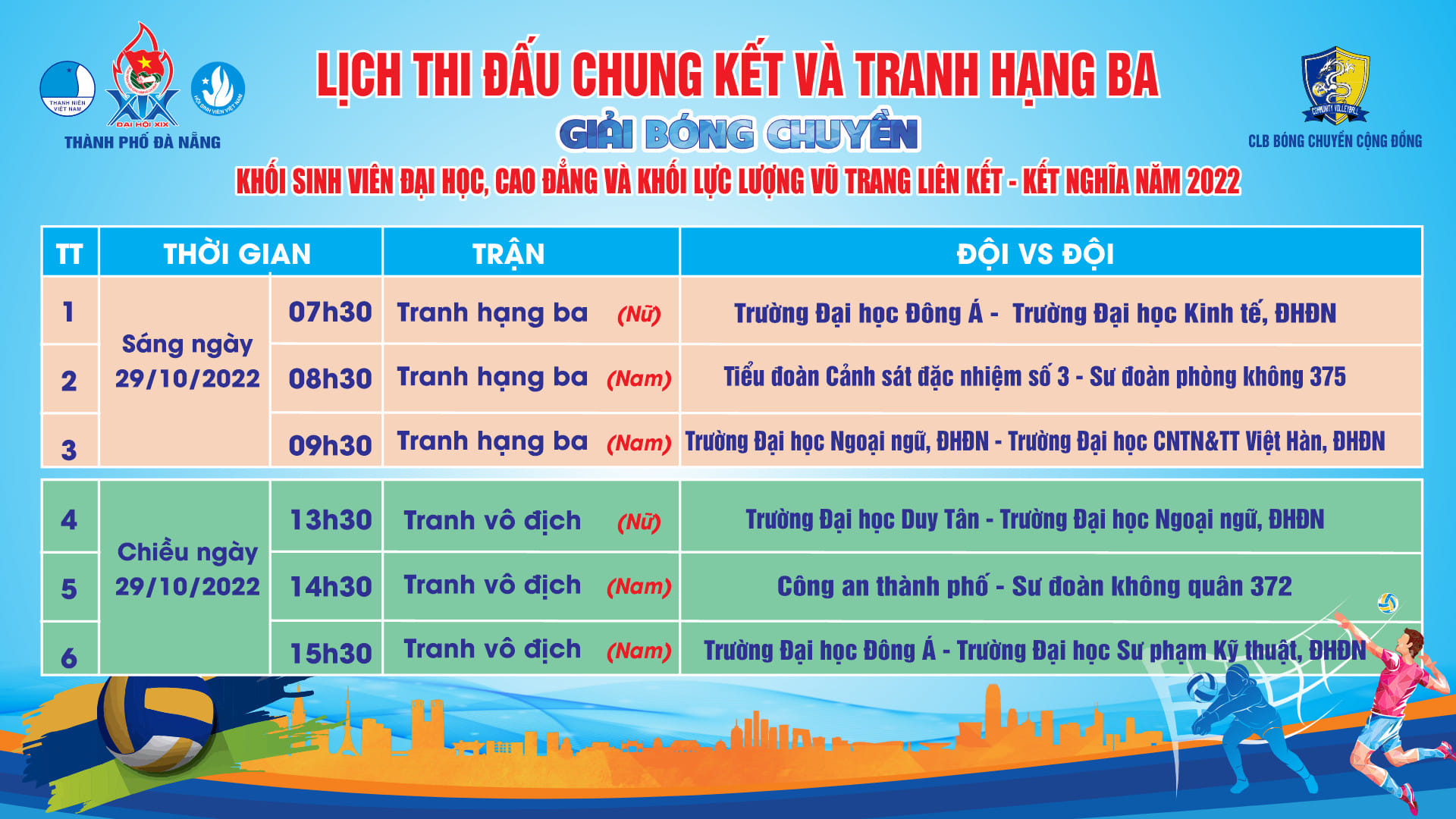 “Giải Bóng chuyền Thanh Niên Đà Nẵng lần 2 năm 2023” là hoạt động thể thao ý nghĩa nhằm tăng cường mối quan hệ giao lưu, đoàn kết giữa sinh viên và các đơn vị lực lượng vũ trang trên địa bàn. Giải đấu không chỉ tạo sân chơi lành mạnh, rèn luyện sức khỏe, mà còn góp phần phát huy tinh thần trẻ trung, năng động và gắn kết cộng đồng trong phong trào thể thao toàn thành phố.